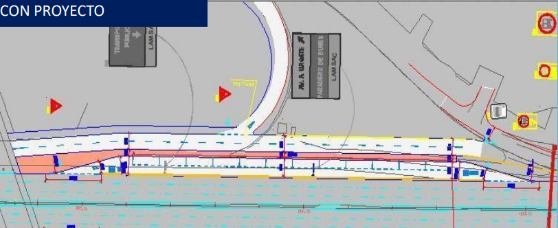 - Se propone reubicar el paradero de Caquetá sentido norte para separarlo de las vías de ingreso/salida del trébol, brindando mayor fluidez.